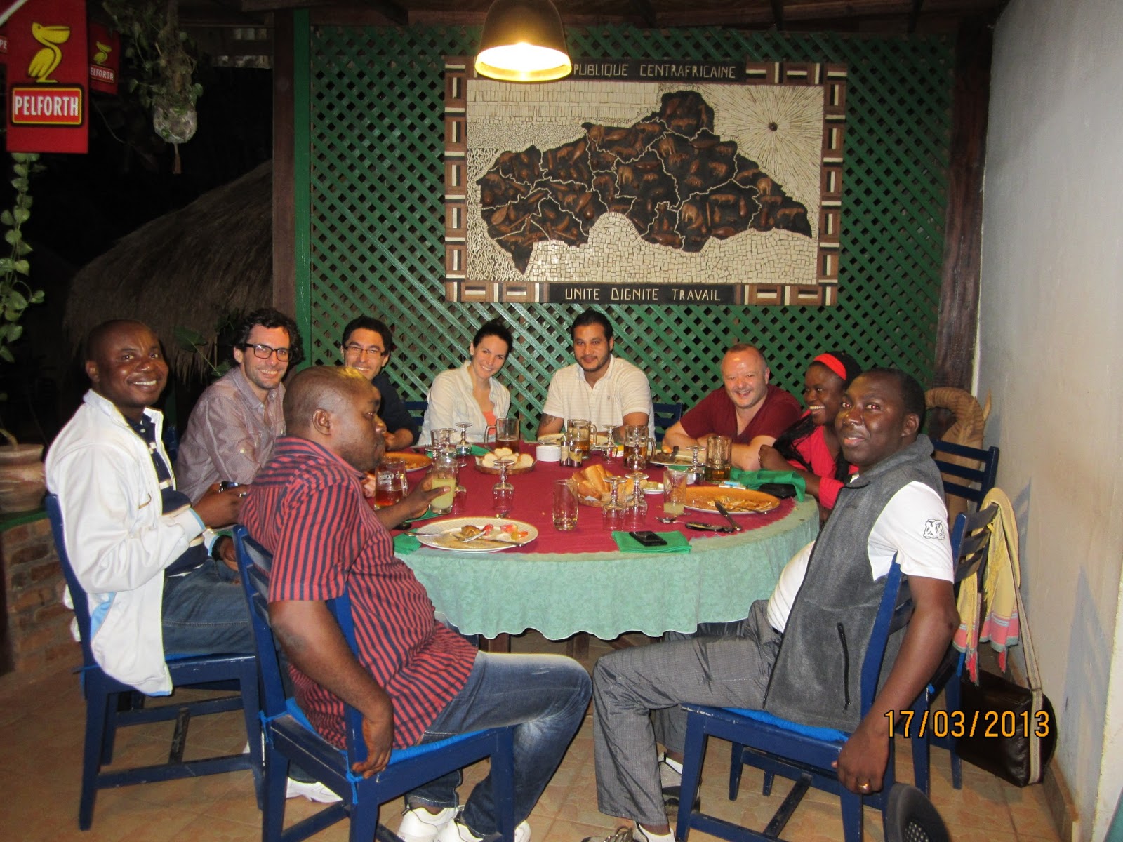 If you read the last blog, you will know we returned from Bangassou in a bit of a rush, but got back safely.We refugees and the guys from the Bangui office went out for a slap up meal including for some, antelope and snails.